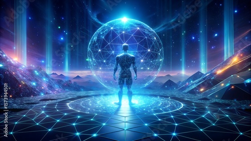 Global business communication: silhouettes of people connecting through a digital network map of the world