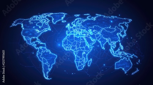 Global business expansion strategy concept with digital world maps and charts.