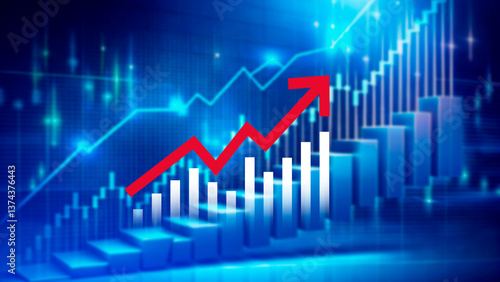 Global business growth analysis and asset investment chart Business and Finance, Up arrow economic chart, global economic trend analysis, Financial graph analysis on virtual screen.