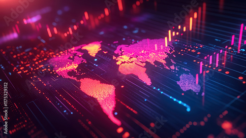 Global Business Growth Visualized with Glowing Arrows and World Map on Financial Chart