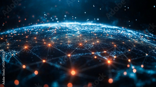Global business network and social media connections concept n abstract design featuring a digital web of interconnected nodes and lines for corporate communication and technology