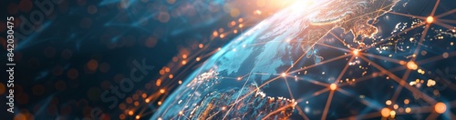 Global Connectivity and Digital Network Visualization involves technology, internet, communication, and data exchange on a global scale, showing interconnectedness via digital networks