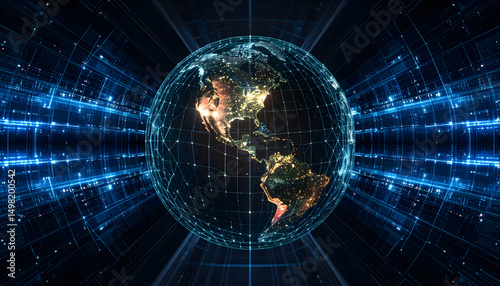 Global digital connectivity illuminating technologies transforming our world cosmic perspective futuristic environment