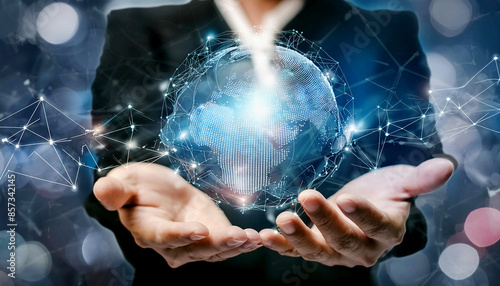Global digital transformation in the hands of innovation. Business global internet connection application technology.