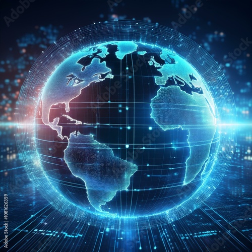 Global Fintech Innovation: Futuristic Planet Hologram with Digital Data Diagram