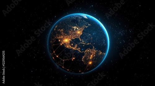 Global Globe Earth Globe with glowing lines connecting different cities, represents global communication and networks