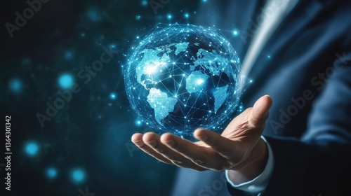 Global Network Connection Businessman Holding Futuristic Digital Earth