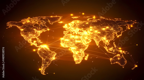 Global network connection concept with glowing dots and lines on world map background. [Glass Realms] | Translucent Kingdom | glowing pane. Illustration