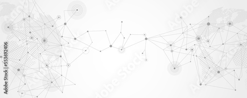 Global network connection. Digital technology with plexus background and space for text.Website header or banner design with science technology, data structure, connected points, web.