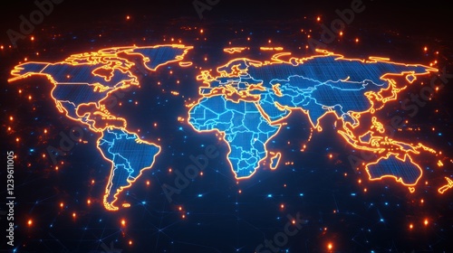 Global network connection, digital world map, glowing lines, data streams, background, technology