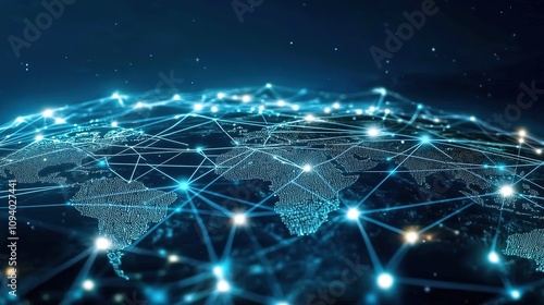 Global network connection lines on earth.