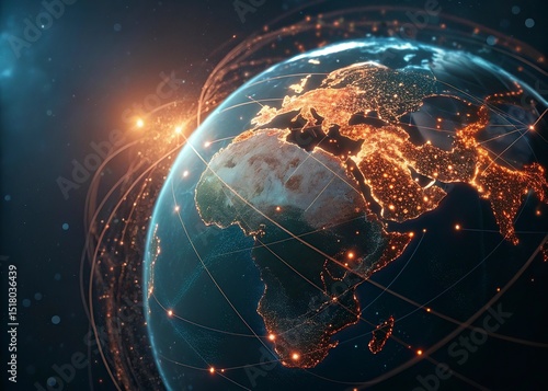 Global network connection over planet Earth. Globalization concept. 3D Rendering,Global network connection covering the earth. 3D illustration.