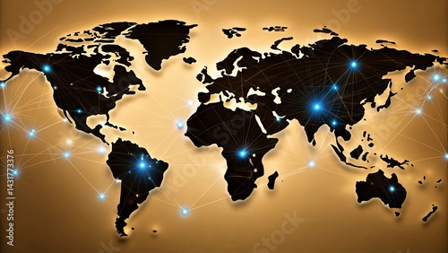 Global network connection over the world. Internet Concept of global business.World map with glowing lines on dark background. Network and communication concept. 3D Rendering