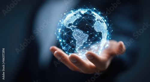 Global network connections visualized as a glowing orb held in a hand