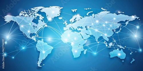 Global Network Connections, World Map, Blue, White, Connections, Global Network Connections, World Map