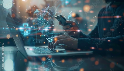 Global Network Connectivity: Digital World in Hands suitable for business background, posters, wallpapers, banners, greeting cards, and advertising for business entities or brands.
