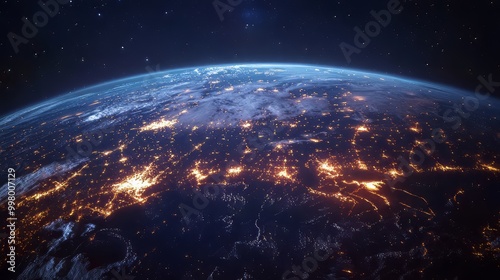 Global network connectivity on earth at night - conceptual illustration for population migration and technology. data migration. Ultra realistic. Photorealistic
