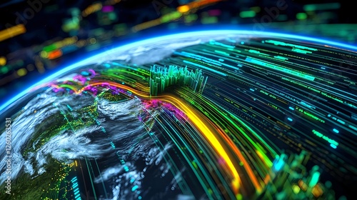 Global Network Data Flow, Earth Tech - Futuristic Technology