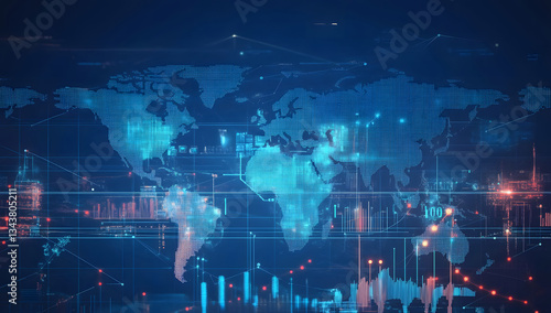 Global Network Data Visualization Futuristic World Map with Data Analytics