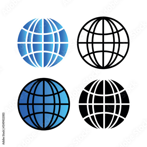Global Network Icon, Wireframe Globe Vector, International Connection Symbol, Worldwide Communication Graphic, Earth Grid Design