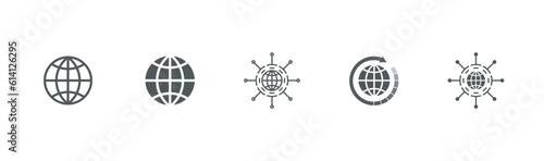 Global networking icon set.Internet web icon Flat Icon Solid style.Different style social network concept. Outline icon on white background.Vector illustration.