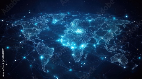 Global social media network connection on planet earth map. Internet technology and online information data exchange