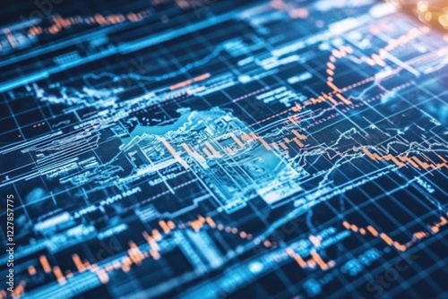 Global Stock Market Data Visualization: Blue and Orange financial charts on a screen