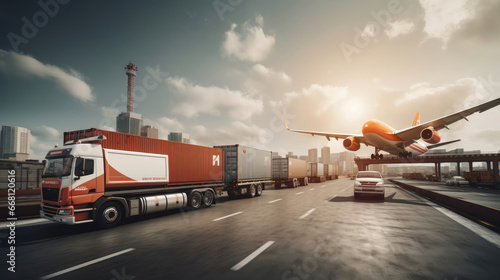 Global Supply Chain: Business Logistics in Action with Plane Truck and Train