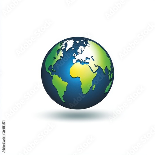 Global world map, green continents, blue oceans, white background, for travel brochures