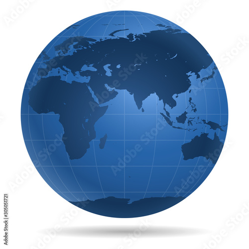 Globe Earth dark continents icon isolated on white background. Europe, Asia, Africa, Australia, Antarctica, Arctic. Vector illustration