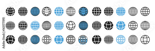 Globe Earth icon set. Flat design. World map concept. Internet, web, web page, connection signs. Language changer symbol.