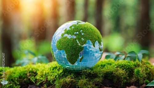Globe on Moss in Forest A Symbol of Environmental Awareness for Earth Day Celebrating the Green Planet and Our Responsibility to Protect Natures Wonders