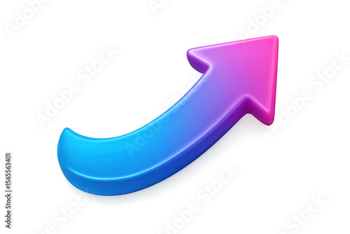 Glossy 3d arrow curving upward with blue-pink gradient, symbolizing business growth against transparent backdrop