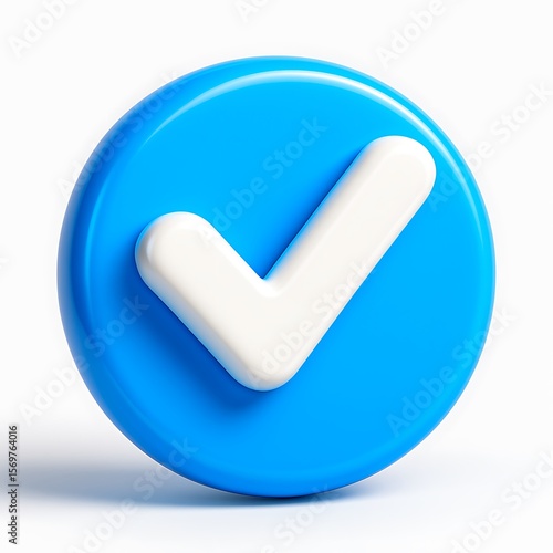 Glossy blue circle with a white checkmark symbol isolated on white background