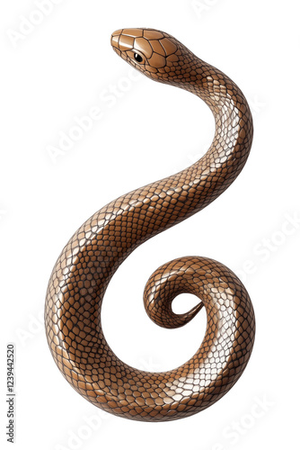 Glossy brown snake coiled in a spiral shape isolated on white transparent background, reptiles or wildlife, symbolizing Chinese Lunar New year