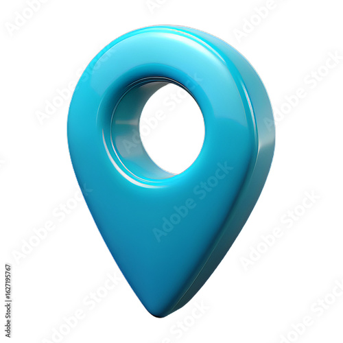 Glossy Cyan Plastic Map Marker with Smooth Curvature and Reflection