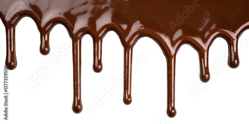 Glossy Dripping Chocolate Isolated on White Background. Perfect for Dessert Design, Baking Advertisements, Sweet Toppings, and Confectionery Branding Concepts