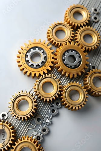 Glossy Image of Mechanical Gears and Circuit Lines Symbolizing Technology Integration in Industrial Innovation