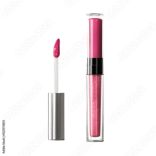 Glossy lip gloss tube with applicator, isolated on a empty plain background