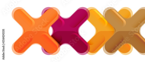 Glossy multicolored plastic style cross composition, x shape design, techno geometric modern abstract background. Trendy abstract layout template