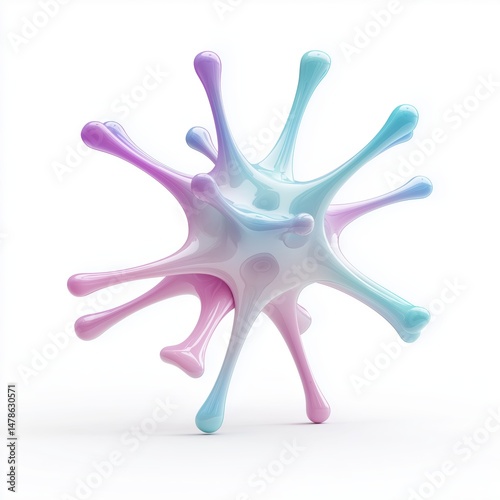Glossy Pastel Neuron with Radiating Arms on White Background