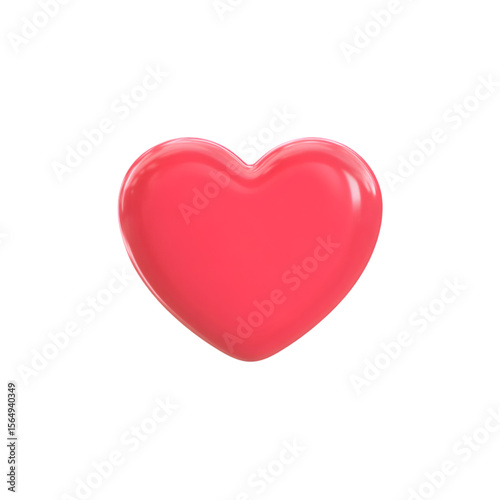 Glossy pink heart shape symbol isolated on transparent background for romantic designs