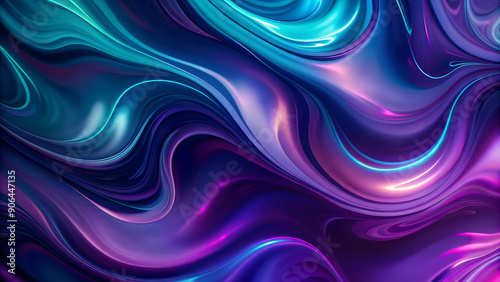 Glossy Purple and Teal Liquid Waves in Abstract Flow Design