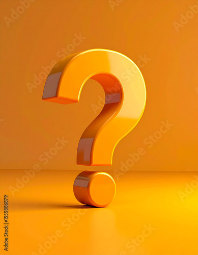 Glossy question mark on bright orange backdrop. Representing curiosity, Q&A and solutions.
