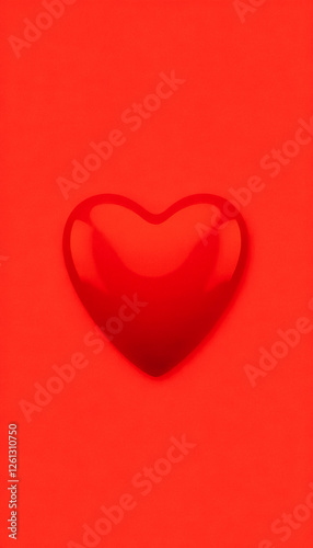 Glossy red heart on a red background for Valentine's Day