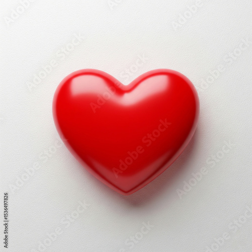 Glossy red heart shape on bright white background