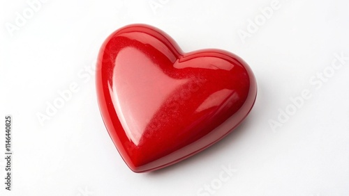 Glossy red heart shaped object rests on a clean white surface, symbolizing love and affection. red heart on white background