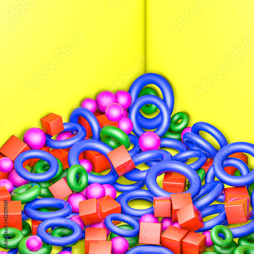 glossy three-dimensional figures on a yellow background. 3D rendering