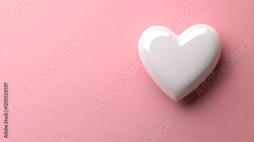 Glossy White Heart Shape on Soft Pink Background for Love Themes