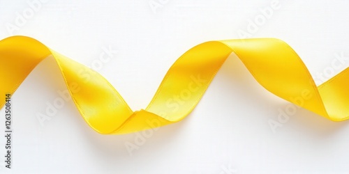 Glossy yellow ribbon curves gracefully over a pristine white backdrop, its delicate strips catching the light with vibrant elegance